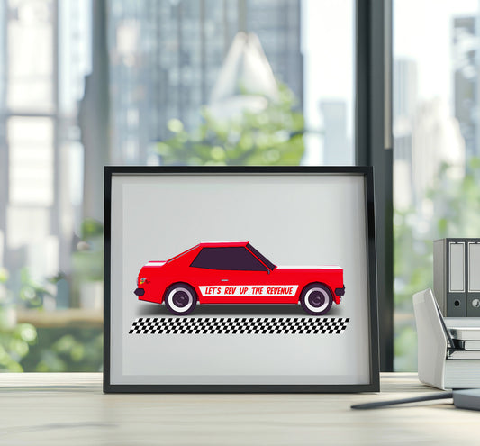 Funny Work Poster Let's Rev Up The Revenue Race Car